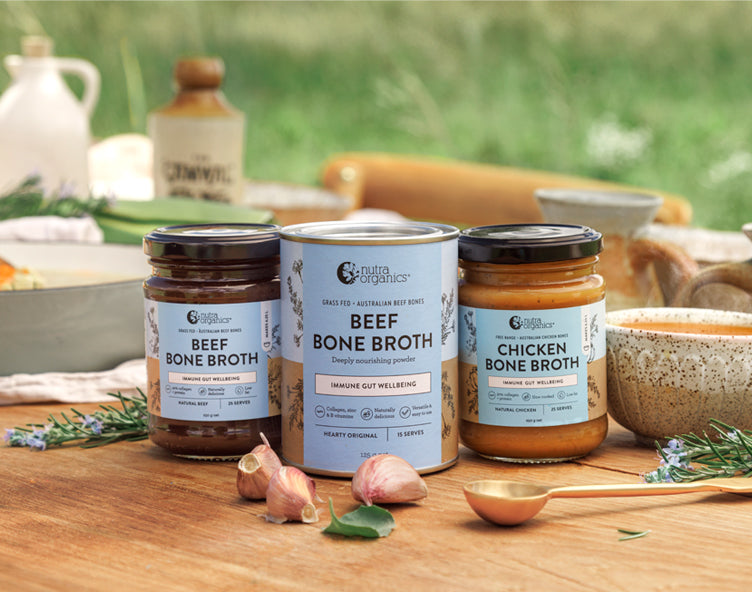 Looking to buy bone broth in Australia? Look no further! We’re confident we’ve got the best bone broth in the tastiest range of flavours. Our low sodium bone broth powders and concentrated bone broths are naturally nourishing and super convenient to add protein, zinc and B vitamins into your diet. All vitamins and minerals in our bone broth powders and concentrates are from wholefoods, no synthetics here, that means your body can actually use the bioavailable vitamins and minerals. Feel confident when you buy bone broth from Nutra Organics that you are choosing from a range of high-quality bone broth powders and concentrates designed to support your health and wellbeing.